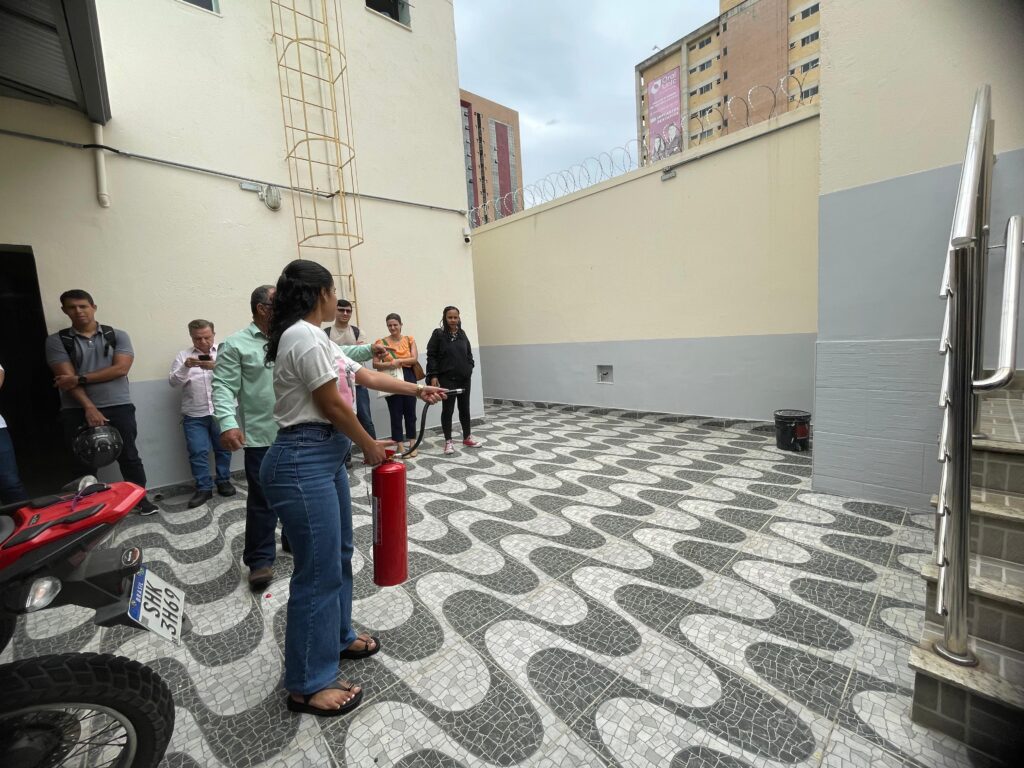 A atividade foi encerrada com uma aula prática sobre o uso correto de extintores de incêndio.